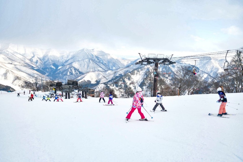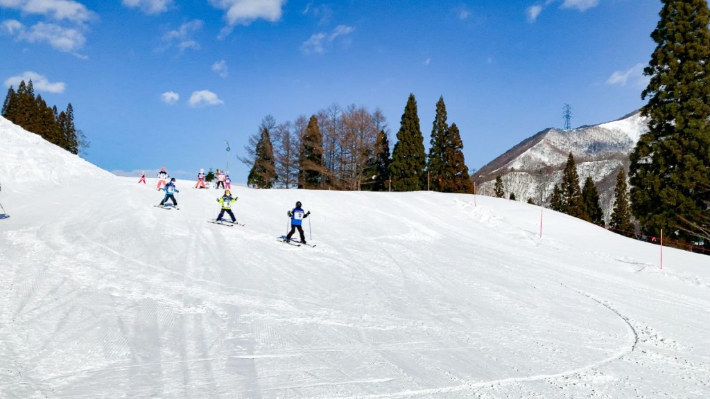 小学生チームは午前中からフリー滑走。苗場スキー場のいろいろなコースを滑り尽くしてきている子どもたちは、自分たちでコース選択をしました。アンケートの結果、断然に人気があったのはやはり苗場スキー場のインストラクターと一緒に滑った火打ちゲレンデ。緩やかながらも景色の変化に富む斜面を、自分たちでコース取りをして滑走していく様は小さなスキーヤーとして心強く映りました。