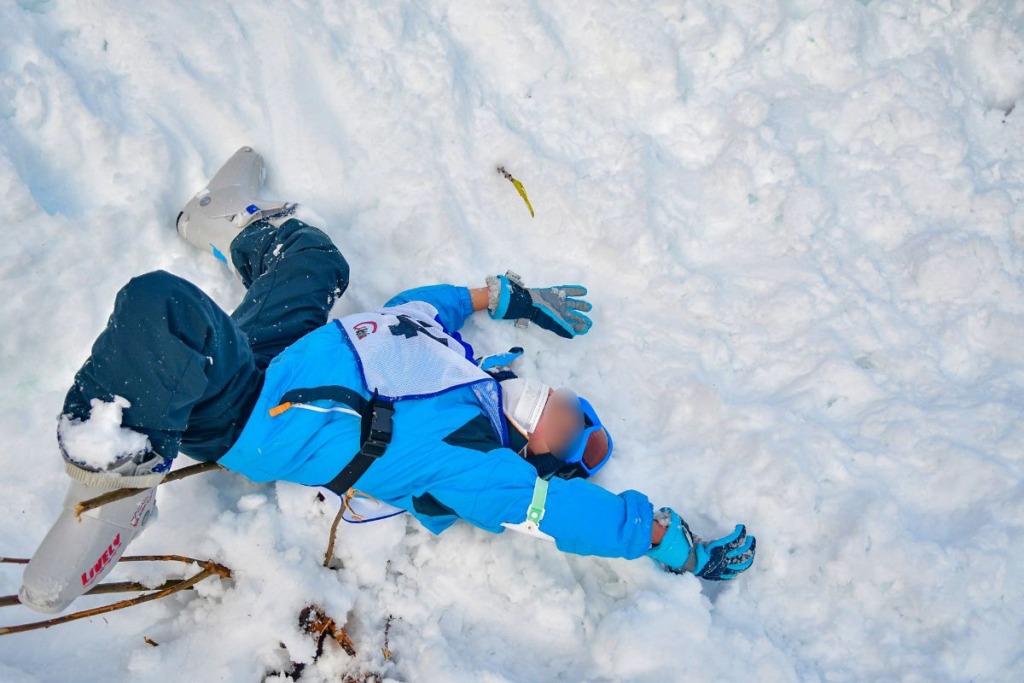 朝食後、最後の雪遊びの案内を子ども達に伝えるとともに、本来は屋外での実施を予定していた「感想ムービー」の撮影を室内で行うことを伝え、あらかじめ、一人一人がカメラの前で話す「一言感想」を考えておくように伝えました。食後の雪遊びの時間に、誰一人ゲレンデに出ないことに不満を漏らす声もなく、楽しんで雪と戯れていたのは、これまでの日々で十分にスキーを堪能したから、という背景もあるでしょう。今回のキャンプで初めて出会ったお友達同士も、すっかり仲を深めて、一緒になって雪に埋もれていました(笑)