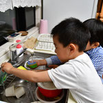 普段からお家でお手伝いをしている子も、そうでない子もみんなで協力して、食器をピカピカに洗えました。