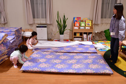 お風呂からあがったあとは、1日目の振り返りをして、お布団をひいて、みんなで一緒に寝ます💤
