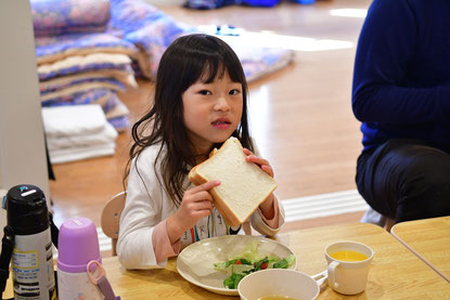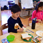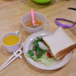 公園から帰ったあとは、朝食の「サンドウィッチ」を作りました。