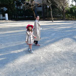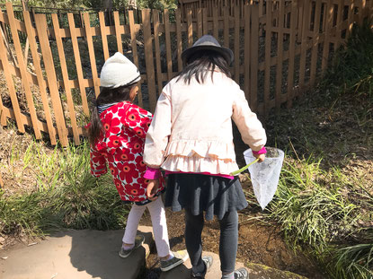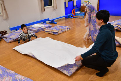 2日目は、お布団をたたみ、着替えをしてから、朝の散歩をしました。