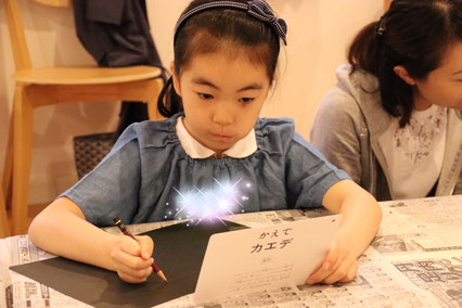 今回のイベントでは、「立体アート」という今まで見たこともやったこともない不思議な絵の描き方について教えていただきました。