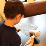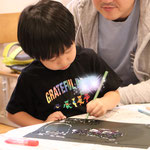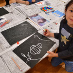 子どもたちは、ボンドで絵を描くという初めての経験に大興奮でした。