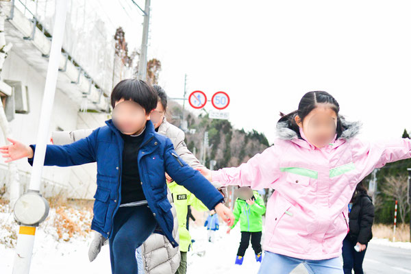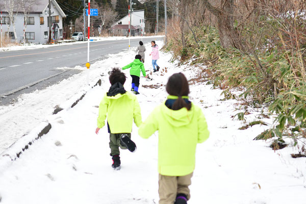 やがてバスを降りると、一面に降り積もった雪に子どもたちは大興奮!