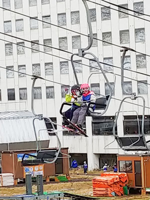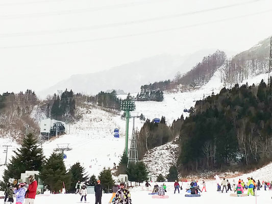 とは言ってもやはり雪はまだ少なめで、稼働するリフトの台数も少なめで人が混み合う中、
