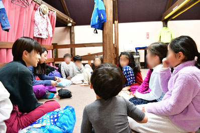 スキーキャンプ の1日目は、お家の方と離れて寝る初めての夜です。特に幼児にとっては、それだけでとても大きなチャレンジ、立派なことです。