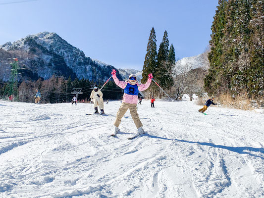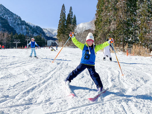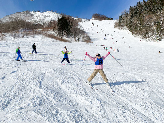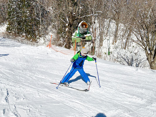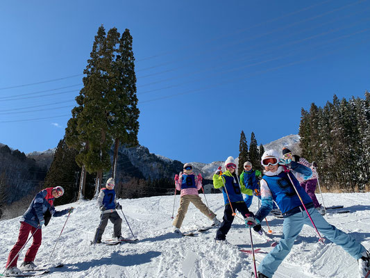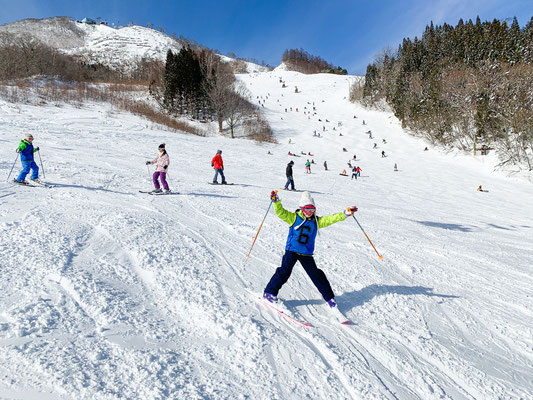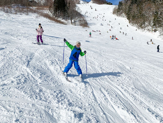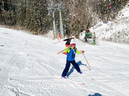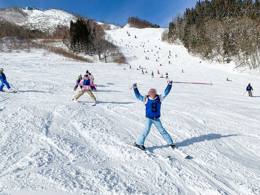 素晴らしいコンディションで2日間に降り積もった雪が適度に締まっており、非常に滑りやすい雪面の様子で、子どもたちは滑走を心から楽しんでいる様子でした。