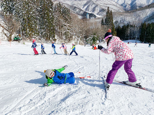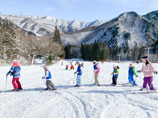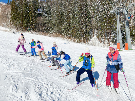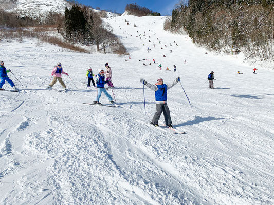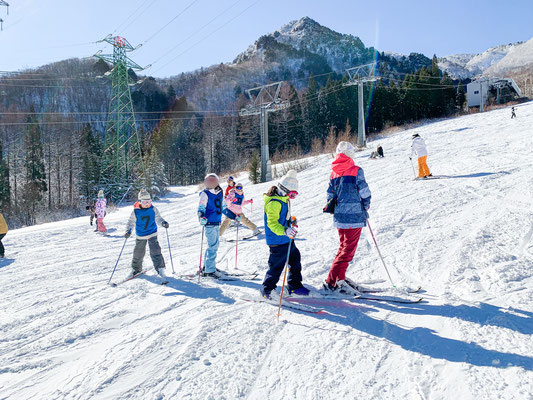 滑りたくてうずうずしている小学生たちは、早速ゲレンデへ!