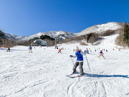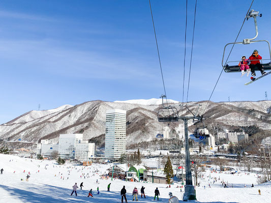 リフト乗り場も比較的空いており、すぐにリフトに乗車することができましたが、リフトの上から眺める景色は真っ青な空と白銀の雪のコントラストで目を見張る美しさでした。