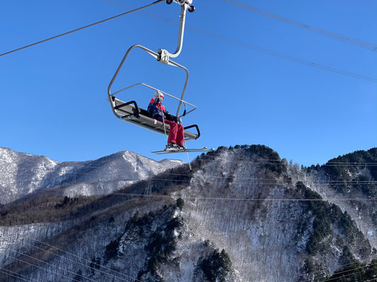 ゲレンデに降り立った小学生たちは、この3日間は一度も乗っていないリフトに乗車し、変化のあるコースの滑走にチャレンジすることにしました。