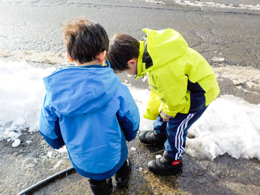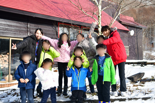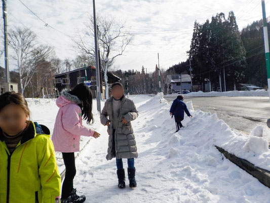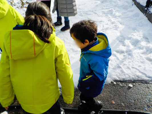 幼児たちと一部の1年生は、3日間で心ゆくまでゲレンデ遊びを満喫したので、宿に残って山小屋の周囲散策と雪遊びを楽しみました。