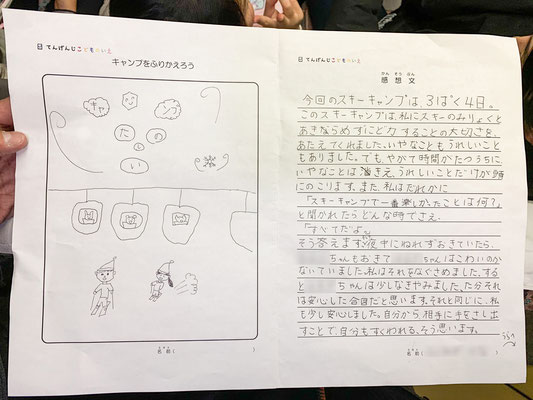 キャンプが終わって欲しくない、まだまだずっとこのメンバーで過ごしていたいという気持ちや、楽しかった思い出が文章の中に溢れ出ている子が多く、聞いているこちらもじーんと胸を打たれるような思いを綴っていました。