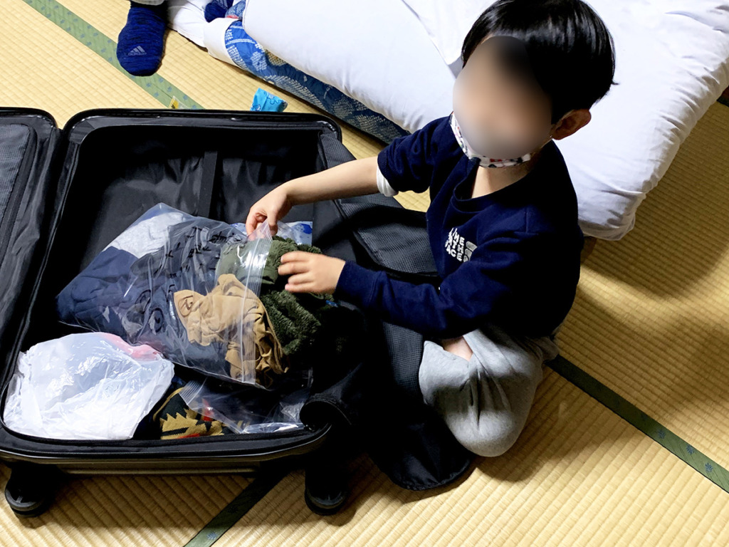 そのため、少し時間をかけながらも、着実に身の回りの整理整頓を進めていきました。ほとんどの子にとって、自分一人で管理することは初めてと言えるような膨大な荷物量を前にしながらも、リーダーが一人一人に声をかけて寄り添いながらスーツケースの中を整えていきました。
