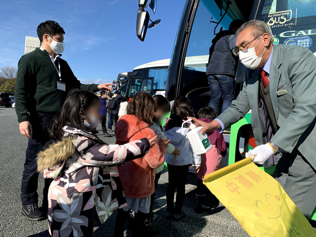 途中SAで休憩を挟みましたが、最低限の時間の滞在にとどめ、バスに乗り込む前の消毒もバッチリです。