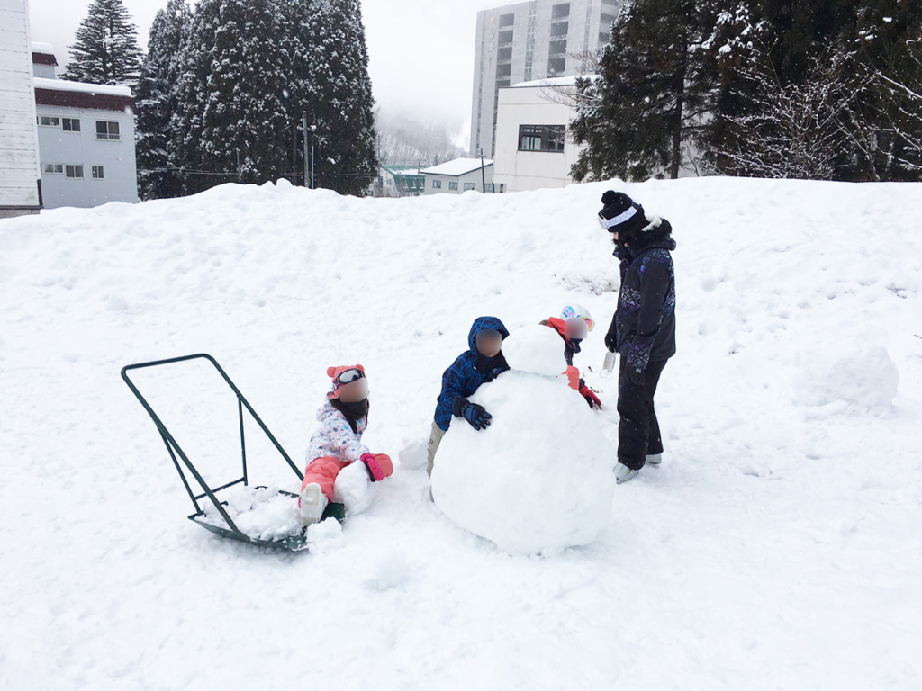 前回のジュニアスキーCAMP報告でお知らせの通り、当初予定から変更して、この日はゲレンデへ足を伸ばすことはやめ、午前中は最後の雪遊びの時間としました。